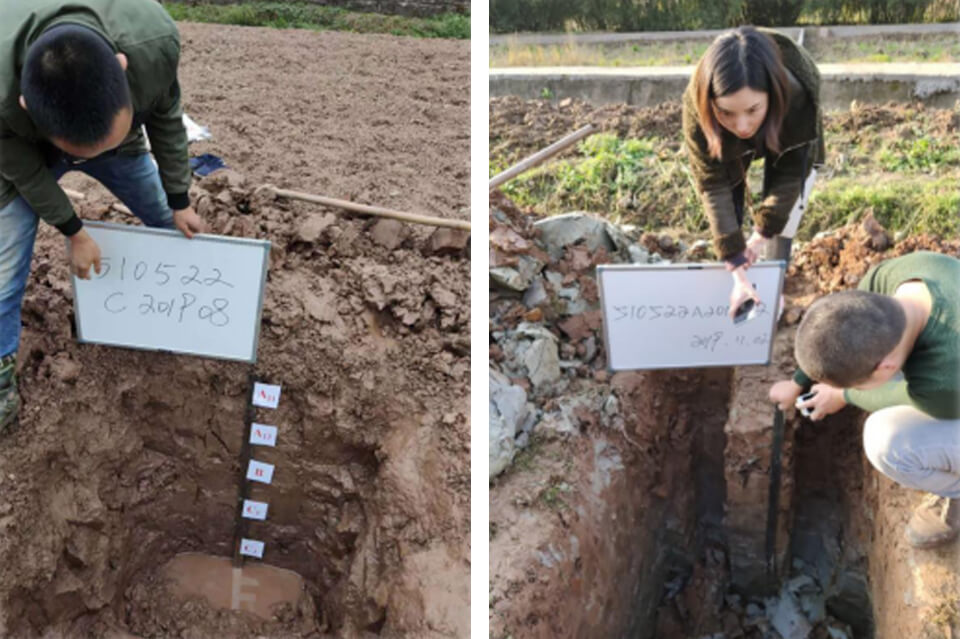 2、耕地質量長期定位監(jiān)測項目(圖為公司員工建立監(jiān)測點相關工作)