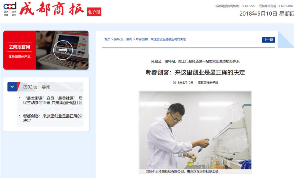 5、2018年5月10日公司團(tuán)隊(duì)創(chuàng)業(yè)事跡被成都商報(bào)專(zhuān)欄報(bào)道 “郫都創(chuàng)客:來(lái)這里創(chuàng)業(yè)是最正確的決定”