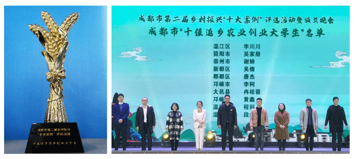 4、公司總經(jīng)理唐杰入選成都市“十佳返鄉(xiāng)農(nóng)業(yè)創(chuàng)業(yè)大學(xué)生” :2019年12月27日晚,成都市第二屆鄉(xiāng)村振興“十大案例”評(píng)選活動(dòng)暨頒獎(jiǎng)晚會(huì)在四川農(nóng)業(yè)大學(xué)成都校區(qū)舉行,現(xiàn)場(chǎng)頒發(fā)了10大類(lèi)獎(jiǎng)項(xiàng),其中,來(lái)自郫都區(qū),入孵于郫都區(qū)創(chuàng)新創(chuàng)業(yè)基地的四川中土檢測(cè)檢驗(yàn)有限公司總經(jīng)理唐杰榮獲成都市“十佳返鄉(xiāng)農(nóng)業(yè)創(chuàng)業(yè)大學(xué)生”,與其他九位獲獎(jiǎng)?wù)咭煌邮芰祟C獎(jiǎng)表彰。
